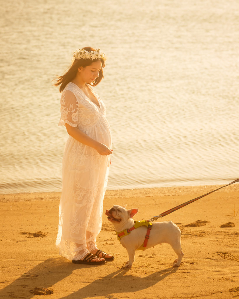 ゆったりとしたデザインなので、妊娠前にLサイズの服を着ていた方でも楽に着れると思います。