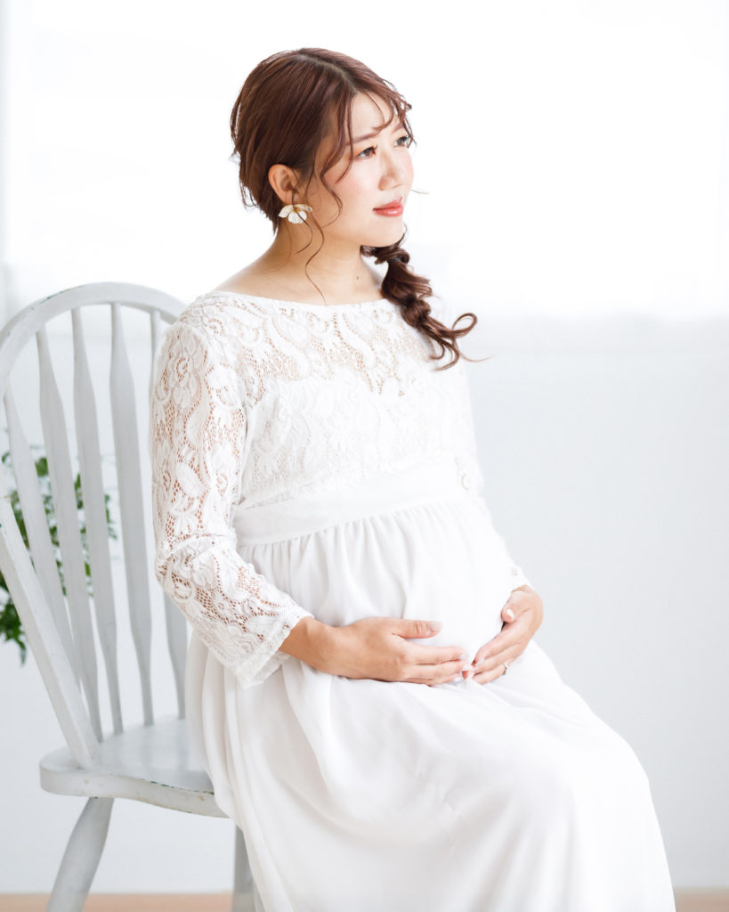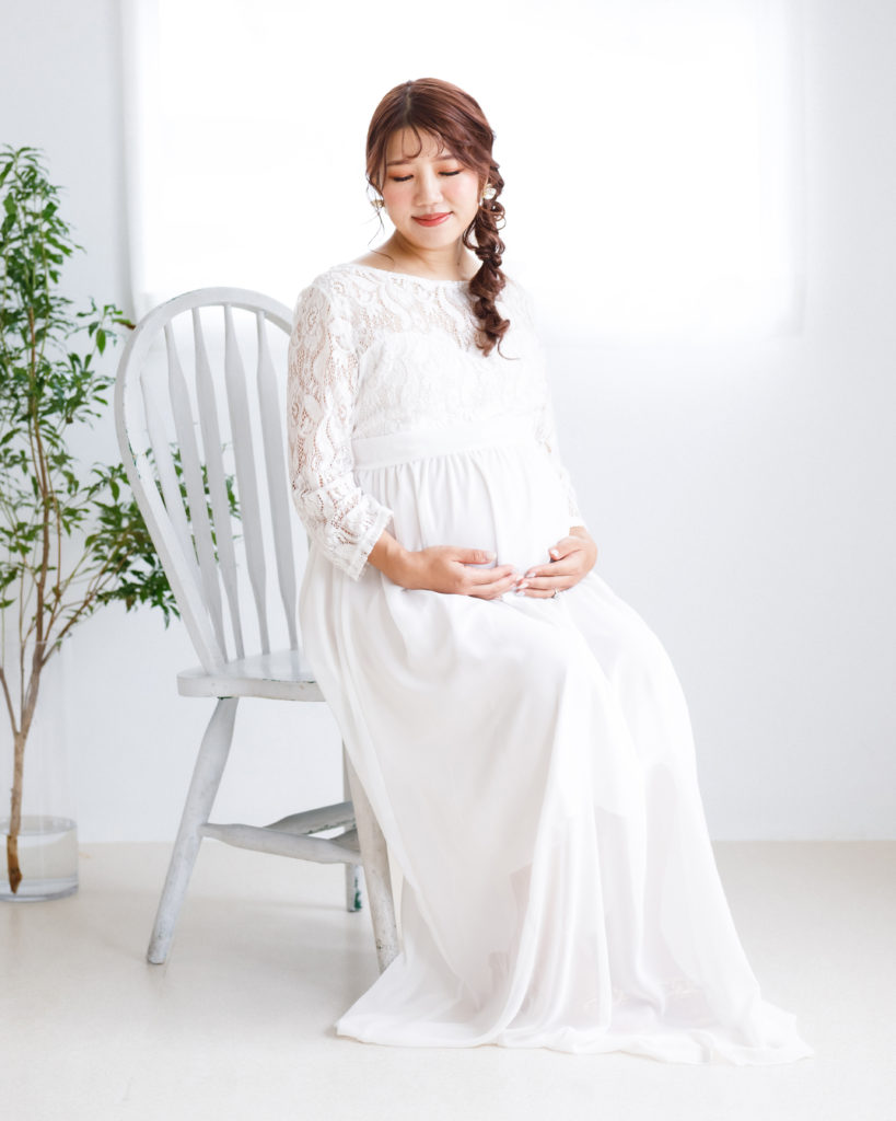 マタニティフォトの定番ドレスです。