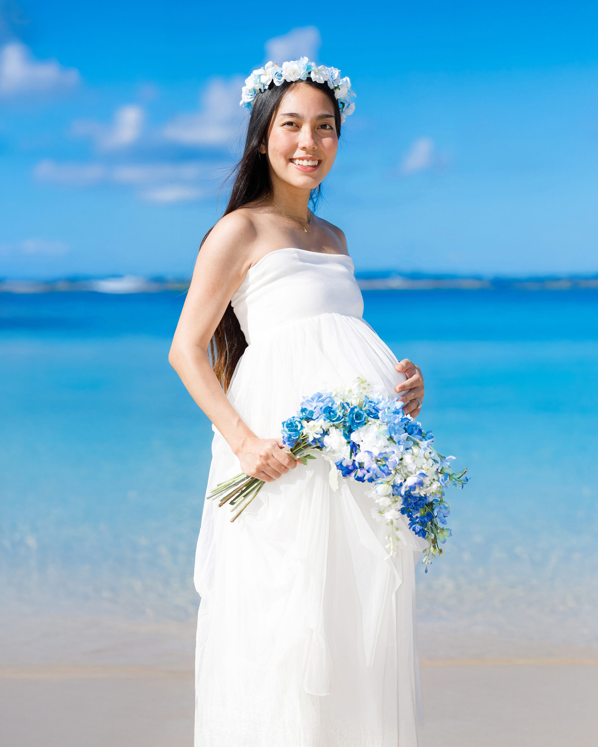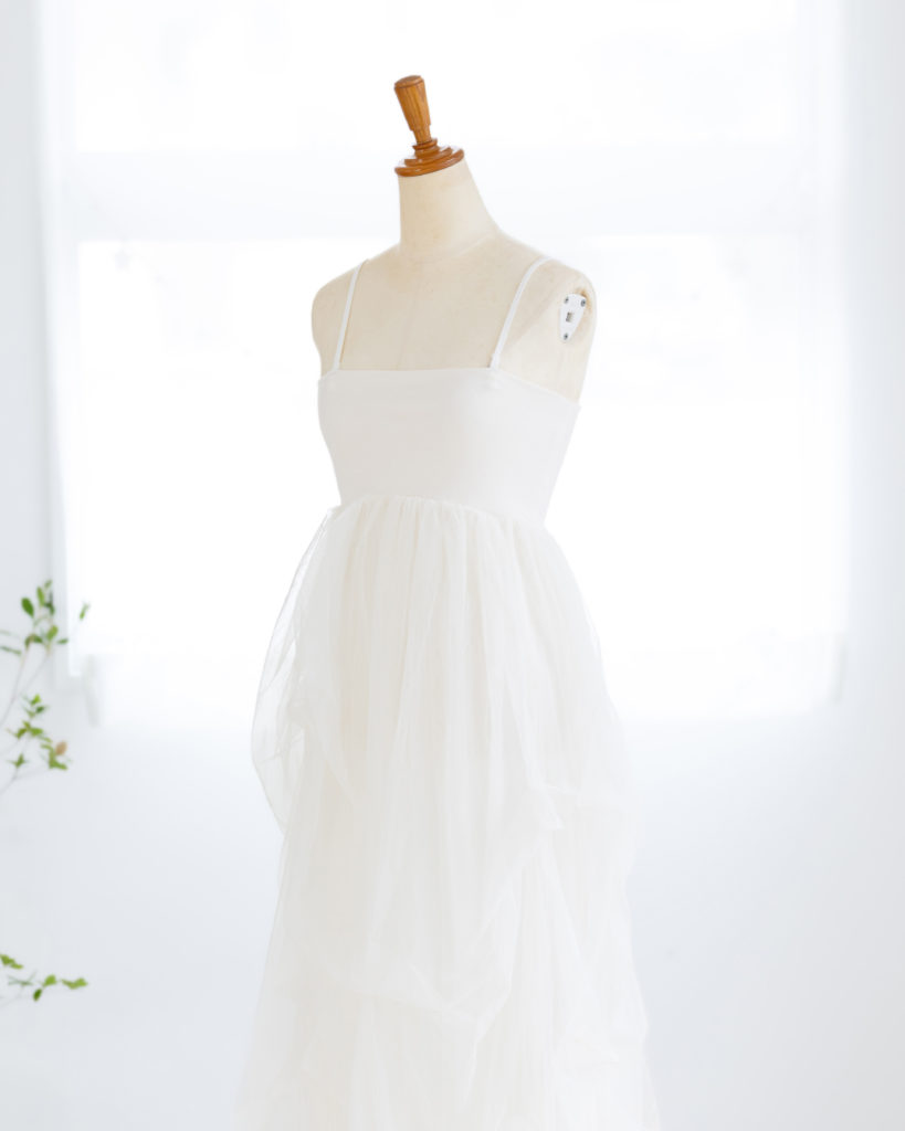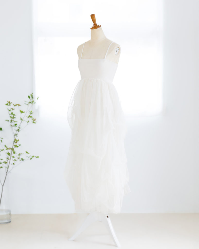 マタニティドレス【Md9-grl】 ドレス・ワンピース 2024/09/232025/08/06 マタニティドレス【Md9-grl】 サイズ:M(妊娠前に着ていた服がSサイズの方向け)アンダーバスト:68cmバスト:76cm〜88cmお腹まわり:80cm〜100cm着丈(胸元から裾まで):130cm着脱:上から被って着る伸縮性:ありカラー:ホワイト 何重にも重なったチュールレースがふんわり広がる、可愛らしいドレスです。トップス部分はニット素材なので多少伸びます。肩紐を取り外すことも可能です。
