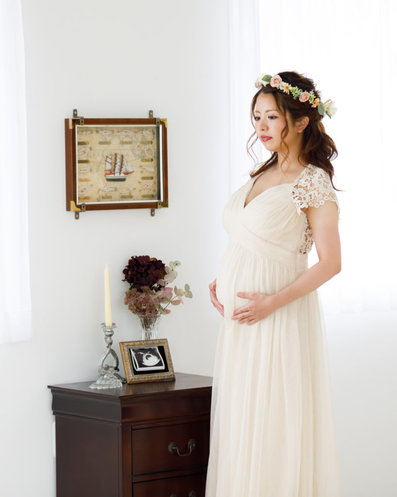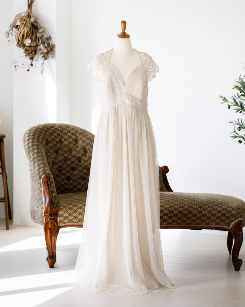 マタニティドレス【Md9-lm】 ドレス・ワンピース 2024/04/052025/08/06 マタニティドレス【Md9-lm】 サイズ:L(妊娠前に着ていた服がMサイズの方向け)肩幅:36cm袖丈:15cmアンダーバスト:78cmバスト:84cm〜90cmお腹まわり:80〜90cm着丈(肩から裾まで):150cm着脱:上から被って着る(脇ファスナー)伸縮性:なしカラー:ベージュ 胸の開きが深く、背中部分はレースの透かし編みで下着が見えます。ドレスの色味に合うチューブトップをご持参ください。